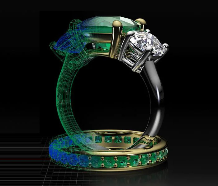 CAD (Computer-Aided Design) has transformed modern jewellery creation by bringing precision, accuracy, and efficiency to the design process. Using advanced 3D software, designers convert conceptual sketches into highly detailed digital models, allowing every angle, proportion, and gemstone setting to be visualised with perfect clarity. CAD enables clients to see realistic previews before manufacturing, reducing revisions and ensuring complete satisfaction. It also supports complex structures that are difficult to achieve manually, making it ideal for intricate patterns, custom fittings, and innovative design styles. Once finalised, the CAD file serves as the blueprint for casting, ensuring flawless execution from digital model to finished jewellery piece.
